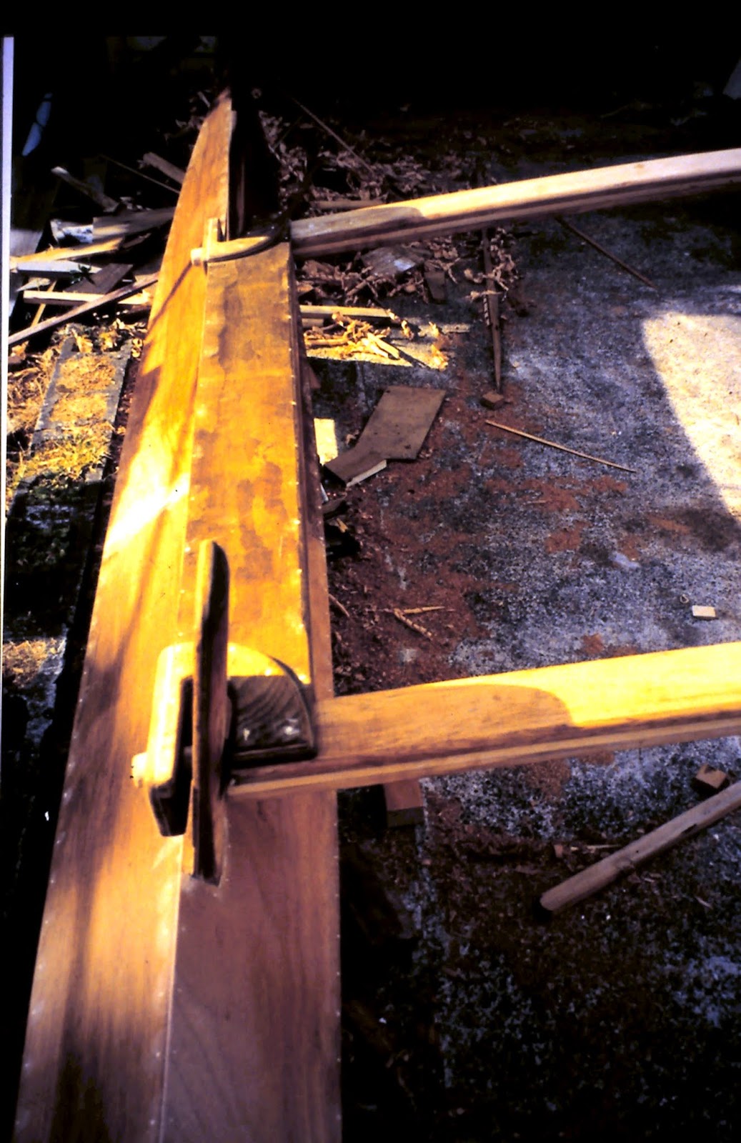 This is the mahogany nose block which was notched to receive the mahogany gunwale stringers.